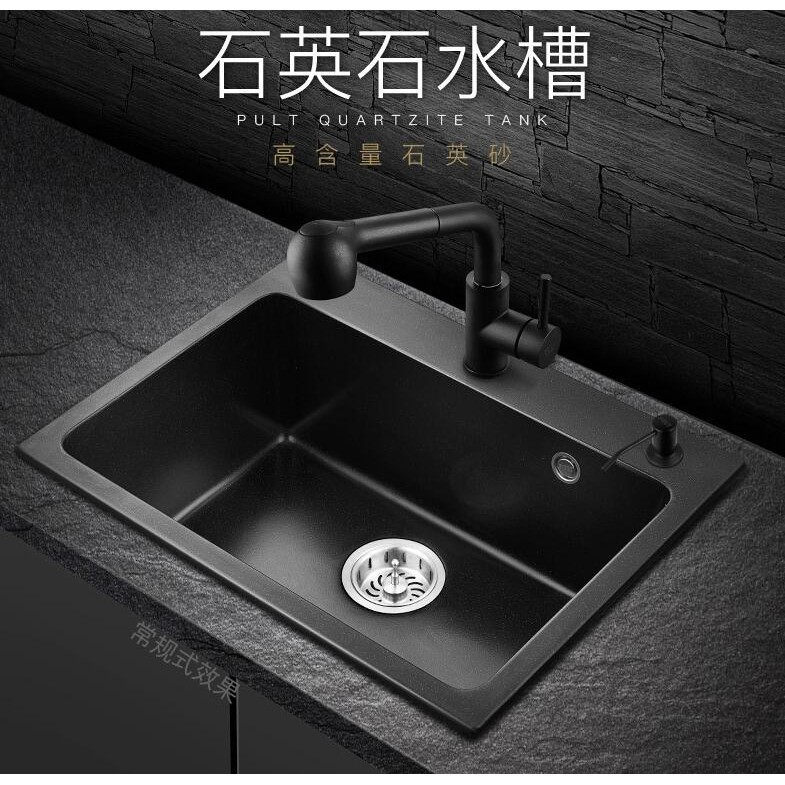 精品上架 德國石英石水槽黑色單槽廚房洗碗池加厚大單槽花崗石水槽洗菜盆套琴江灣 露天拍賣